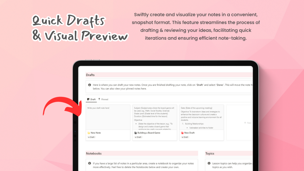 Custom Notebooks: Group related notes together, whether by subject, project, or any other desired criteria.